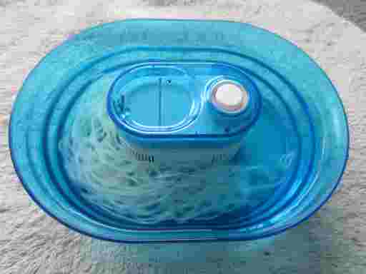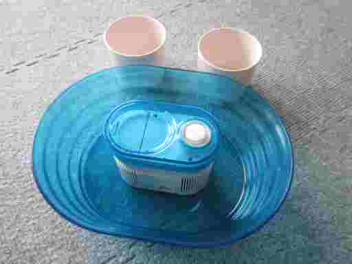 それはそれは神棚に上げますよ(笑)。たかがそうめんとお思いでしょうが、されど、そうめん。大ごちそうなので、食卓にはそうめんオンリーしか出さないのですよ。香の物はあります。でも、汁物がない。ん?めんつゆが汁物に当たるのか?? オヤジは、普通にめんつゆに浸けながらおいしそうにそうめんをすするんですけど、4兄妹のころんがし(子供のこと)にとって、ボールにただただ茹でたそうめんが入ってあって”氷”がトッピングしている食事に・・・・・どうしても心惹かれないのですよ。 でも不思議ですね。歳をとって独り身だと、2分茹でるだけで手軽に炭水化物が摂れるそうめんが、すんごく重宝なんですね。 そうめんといえば、そうめん流し。家庭用のそうめん流し器はこのページでもいくつかご紹介しましたが、な、なんと、独り身にやさしい、ついに、このサイズ??なんとどんぶりサイズのそうめん流し器が発売されました。
